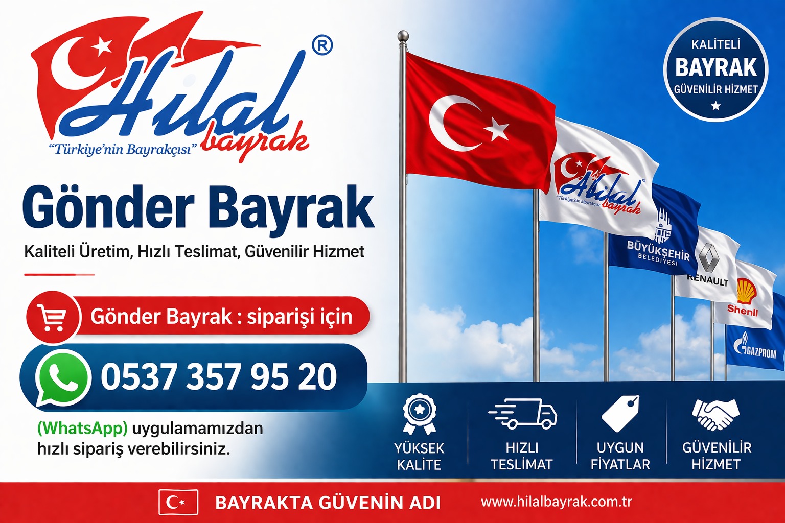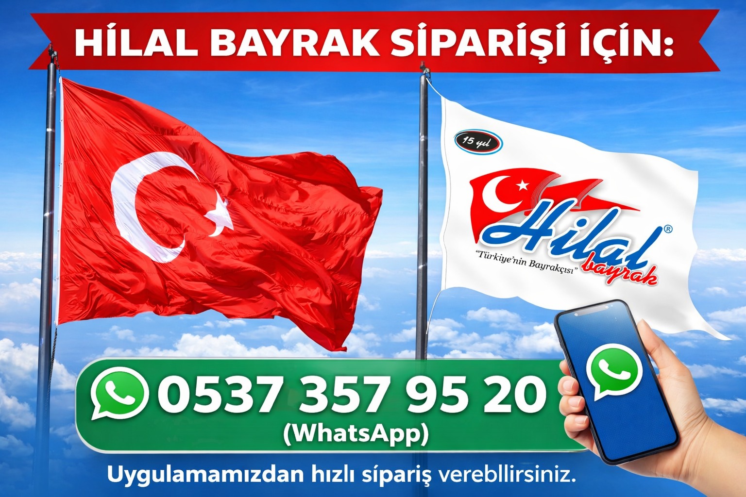 Gönder Bayrak; Siparişi İçin 📱 0537 ) 357 95 20 WhatsApp Uygulamamızdan Gönder Bayrak Hızlı Sipariş Verebilirsiniz.